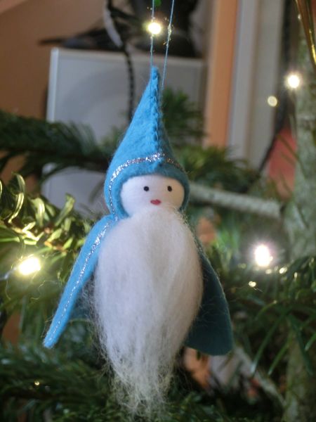 Weihnachtswichtel aus Walnuss und Wattekugel
