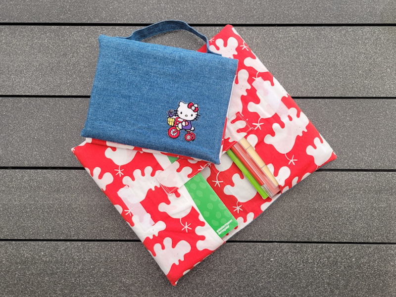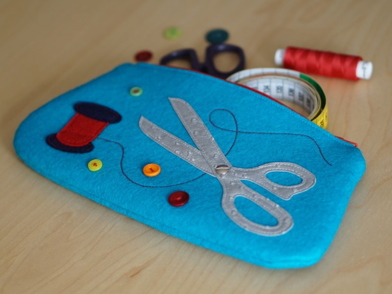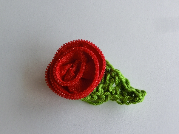 Kleines Reissverschlussröschen mit gehäkeltem Blatt